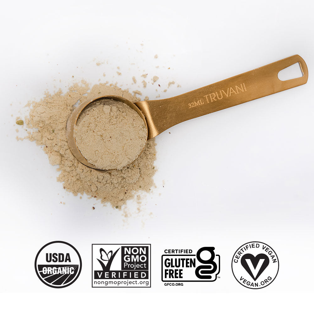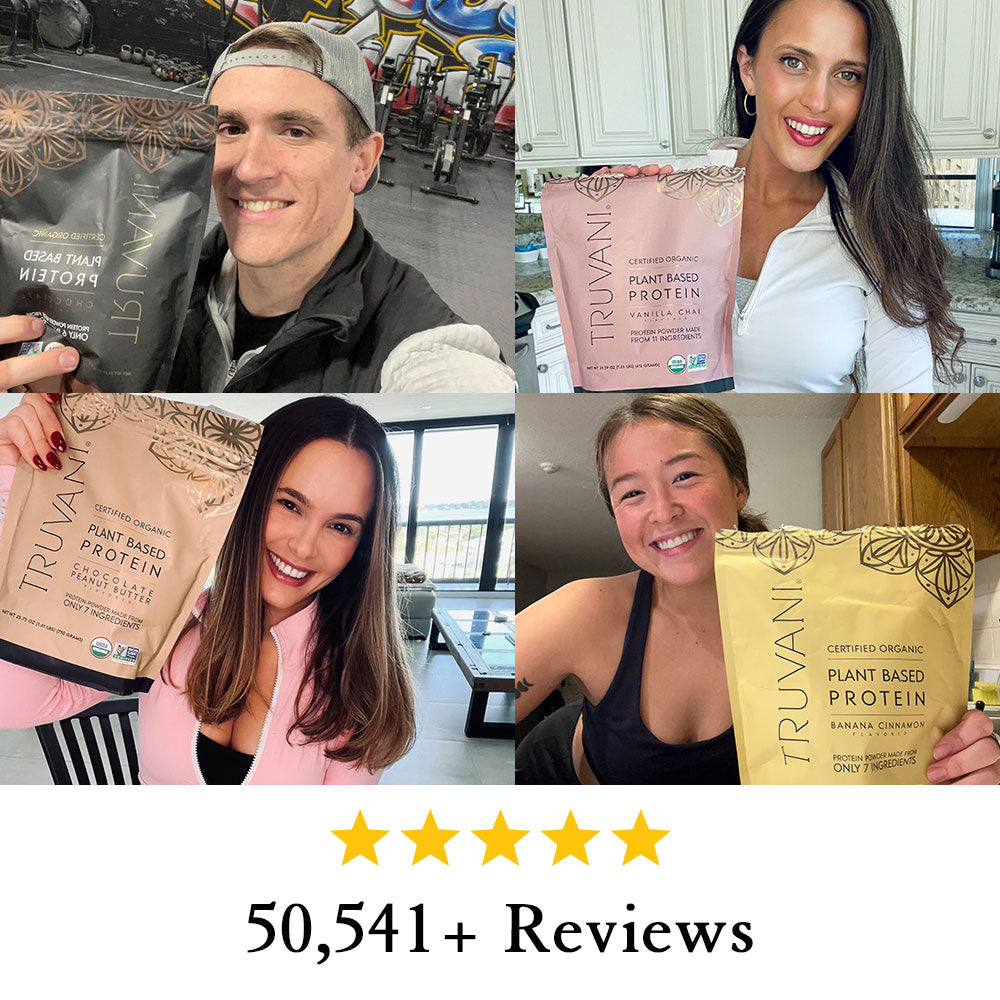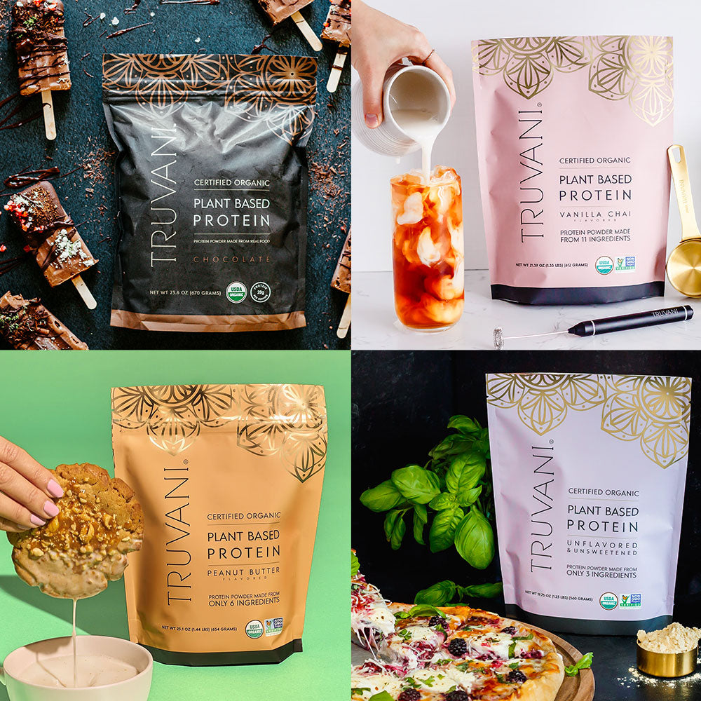 Every bag of Truvani’s plant-based protein is made with 3-11 organic ingredients you’ll recognize. Each flavor starts with organic pea protein, organic pumpkin seed protein, organic chia seed protein and lightly sweetened with organic monk fruit.