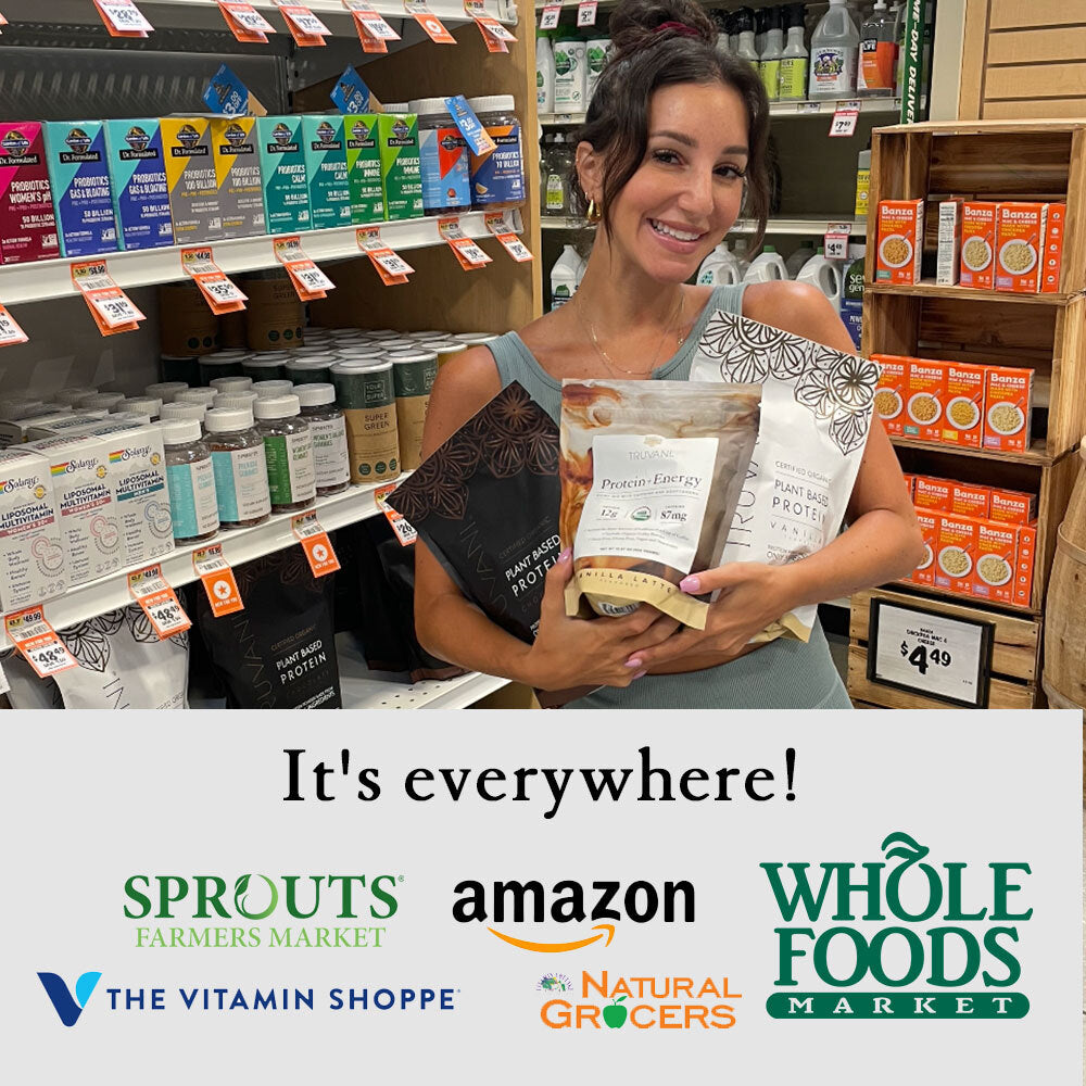 Not only can you access it on our site, but you can also find Truvani Plant-Based Protein in some of your favorite stores like Sprouts, The Vitamin Shoppe, Natural Grocers and Amazon.
