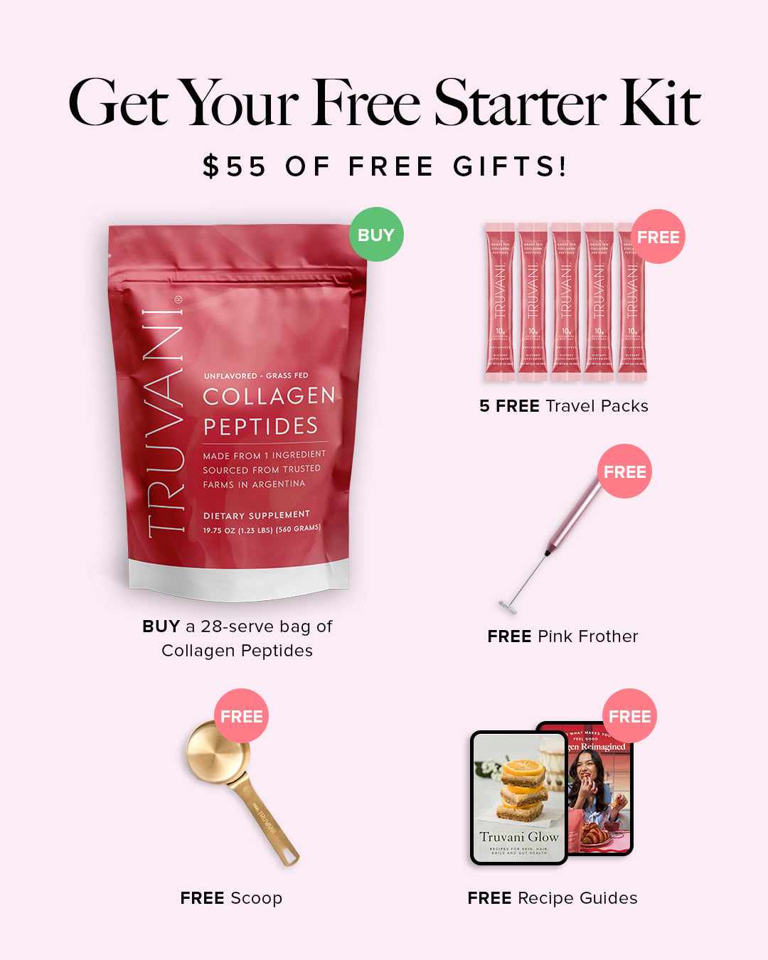 Finally, a Collagen Peptides you can trust. And if you order today, you’ll receive a powerful pink frother, a metal scoop, and 2 recipe guides for free.
