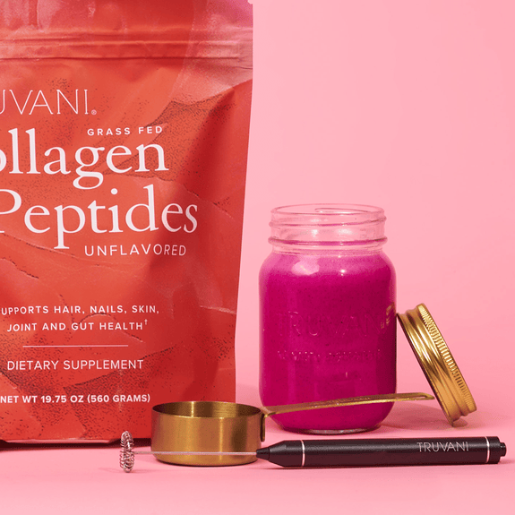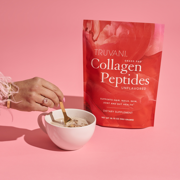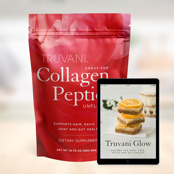 Our Guarantee Our Guarantee When you receive any of our products we have a simple promise: fall in love with it within 30 days or you can get a refund. No questions asked. (Minus shipping and handling, when applicable). Frequently Asked Questions Truvani’s Bovine Collagen Peptides contain Type 1 and Type 3 collagen. Type 1 supports skin, hair, nail, gut and joint health. Collagen is a naturally occurring protein that is abundant in our body. Over time, our collagen production decreases as we age. Which is why taking Type 1 collagen is a great way to support our body. Type 3 is similar to Type 1 in that it helps support our skin and parts of our organs. It offers many of the same benefits, which is why they work great hand-in-hand. We source our collagen from grass-fed and pasture-raised cows in Argentina, without any added hormones, steroids or antibiotics. 1 scoop (20g) contains 20g of Collagen Peptides (from bovine). The answer is… just about any way you want! Truvani’s Collagen Peptides are flavorless and dissolve into any liquid hot or cold. Try frothing it in your morning coffee, stir it in your baking mix or toss it in your protein shake for added hair, skin, nails, gut and joint benefits! Yes. This means our Collagen Peptides have undergone hydrolysis, an enzymatic process that involves breaking the collagen down into smaller units, to make them more digestible for us. This allows for the collagen to be soluble in both hot and cold liquids, unflavored and odorless, and provide maximum bioavailability and effectiveness. No. This product is sourced from grass-fed and pasture-raised cows in Argentina, without any added hormones, steroids or antibiotics. Yes. This product does not contain dairy, gluten or soy. Adding collagen to your health regimen is not a one-time thing. Consistency is key: The people that report the BEST results are those who add collagen to their daily routine. You may see and feel improvements within 4-6 weeks or sooner. However, we recommend taking it on an ongoing basis to help fight against the natural collagen breakdown in the body. Remember that whenever you’re making changes to your diet, it’s always best to consult with your physician. Our Collagen Peptides are unflavored and do not contain Stevia. You can mix it in your coffee, smoothie, or food, and the taste and texture barely change. Our goal is to help people of different dietary choices find a supplement that works for them. We originally started with Marine Collagen as an option for pescatarian people, when we were not satisfied with the ingredients in other collagen products. In the past, we did not want to release Bovine Collagen Peptides until we found suppliers who met our requirements. But finally, we found a supplier who’s strict farm practices align with our standards. We sourced the right ingredients and were able to bring you a product we would give our own families. 2 year shelf life from MFG (Manufacturer Date).